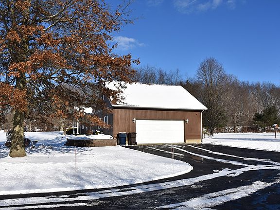 Picture perfect 8.83 acres, 574' paved road frontage. Stocked pond, and Gravel Run stream meanders thru. Solid quality construction, 2x6 walls, mint, move-in condition, and an unfinished basement for potential living space. Heated entrance to basement and entrance to garage from basement. 12' ceiling in garage, paved drive, shed, and a generator for the house. Open Kit., DR, and LR with views of gorgeous stone wall/WBFP. Deck with access from LR & Main BR. Bonus room for office, extra BR, etc.