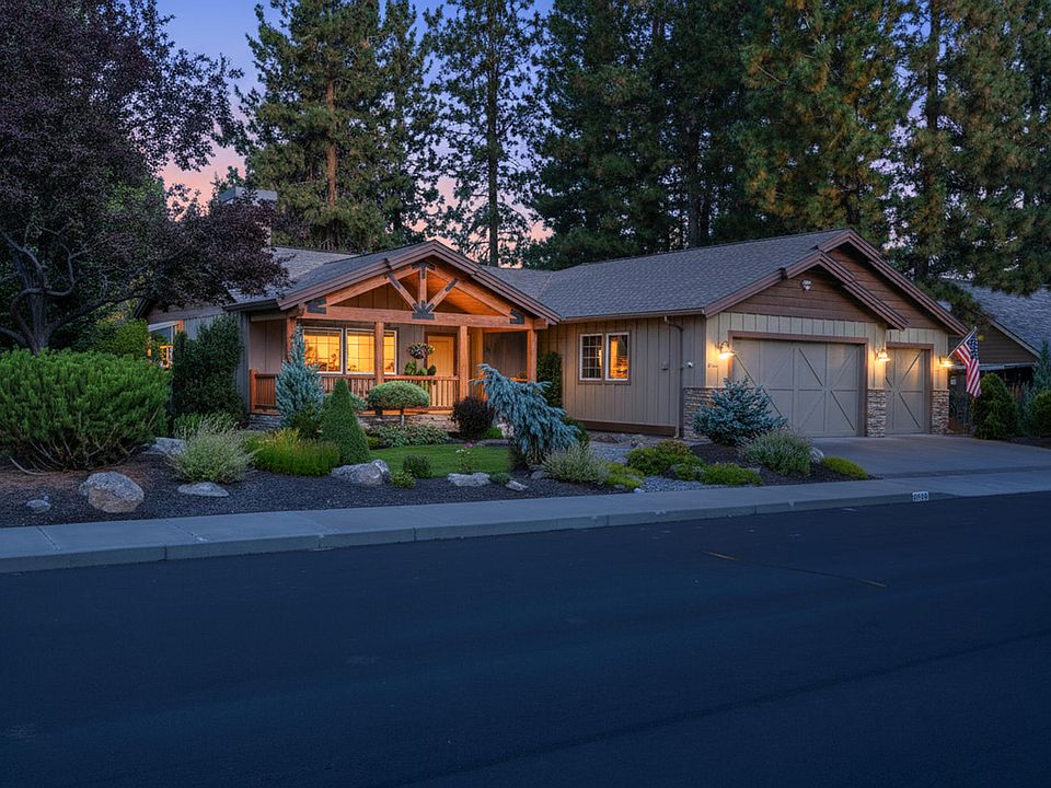 This custom-built Mtn Pines residence is a masterpiece of design & craftsmanship, situated along Bend Golf & Country Club. Spanning over 2,062 sq ft of SINGLE level living, this home has been meticulously cared for & showcases extraordinary attention to detail. The spacious great room features a cozy gas fireplace. The home boasts upgraded features throughout including hardwood floors, slate countertops & sleek Stainless Steel appliances. Rich wood & stone accents add warmth & character, while the luxurious master suite provides a private & serene retreat. Step outside to a beautifully landscaped yard that feels like a private oasis. A tranquil water feature, a greenhouse & lush mature landscaping create a stunning outdoor environment perfect for relaxation & gardening. The property also includes a THREE car attached garage w/ ample space for a golf cart. As part of a certified FIREWISE community, this impeccably maintained home offers both beauty & peace of mind.