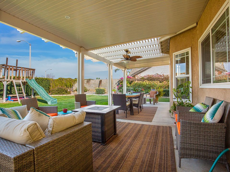Pride of ownership shows in this beautiful turnkey home. This lovely home is situated in a fabulous neighborhood of Orange Crest! This two level 4 bedroom 2 bath home. Large updated eat-in kitchen with updated wood cabinets, granite counters, with an island and plenty of space for your dining room table. The living room has a fireplace with sliding glass doors that lead to a large yard great for entertaining! Home also features generous sized bedrooms, as well as a 3 car attached garage with direct access. Large back yard that is well maintained.