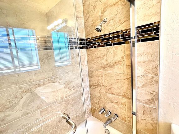 Custom tile showerShower doorBlack appliancesAll light fixturesBath tubWalk-in closetsBlinds throughout unit