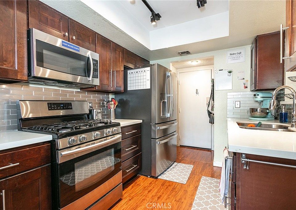 Upstairs there are two bedrooms , 2 bathrooms with tubs, and a laundry area. The primary bedroom is bright with ample closet space and a modern vanity area that is separate from the bathroom. Upstairs also provides a balcony with lovely views of the pool. What makes this unit unique is the attached, private 2-car garage, a rarity in this complex. Townhome features newer A/C with Nest thermostat. Complex amenities include a pool, spa, rec room and extra guest parking spaces. HOA dues cover water and trash! Located just moments from shops, restaurants, and parks, this prime Winnetka location offers the best of urban living with a suburban feel. Commuters will appreciate easy access to major freeways and public transportation, making it a breeze to explore everything the Greater LA area has to offer!