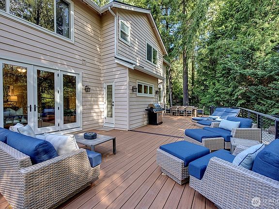 Stately and inviting, this Sammamish home blends quality finishes, privacy, and comfort in one high-end retreat. At its heart, a grand chef’s kitchen, two dining areas, and a bonus room with cozy fireplace flow seamlessly together, while a separate living room and den add flexibility. Built-ins and hardwoods grace the main floor, with new carpet upstairs leading to a spacious primary suite with spa-like bath and soaking tub. Outdoors, enjoy true Northwest living on a rare private lot with a huge 700-sq-ft deck, lush greenery, and a flower-lined driveway that says “welcome home”. A huge nearly 600-sq-ft garage, modern updates, and a new septic pump complete this quiet oasis close to parks, amenities, and award-winning Issaquah schools.