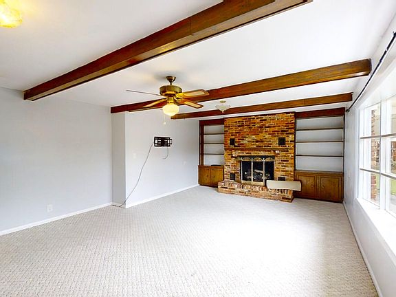 Walk through 24/7 with our 3D Tour! Charming 3 bedroom, 2 bath ranch with large lawn and covered front porch. This home has 2 driveways and one has a carport. Front entry opens to the great room with exposed wood beams, bay window, built in shelving, gas brick fireplace and upgraded carpet. This home has a separate breakfast room and the kitchen has abundant cabinet storage. All appliances remain including the refrigerator, washer and dryer! Formal dining room has hardwood floors, chair rail molding and natural lighting from the large window. Side door off of the dining room provides access to the enclosed Florida room/sunroom. Hardwood floors continue down the main hall into the 3 bedrooms. Owner's suite features a private bathroom with a shower and a private screened room off the back. The private screened room features a hot tub & sauna! Two additional bedrooms feature hardwoods, great closet storage and access to the 2nd bathroom with shower/tub combo. Fenced in backyard has a shed for additional storage. Roof was replaced in May 2023 and HVAC was replaced in 2020. This home was expanded by previous owners from its original configuration. (All measurements are approximate) The large sunroom is 14ft x 19ft. Formal dining room is 11ft x 14ft. Owner bath is 11ft x 8ft. Sauna/hot tub room is 10ft x 10ft. Home has newer, energy-efficient windows. Be sure this one is on your list to see!