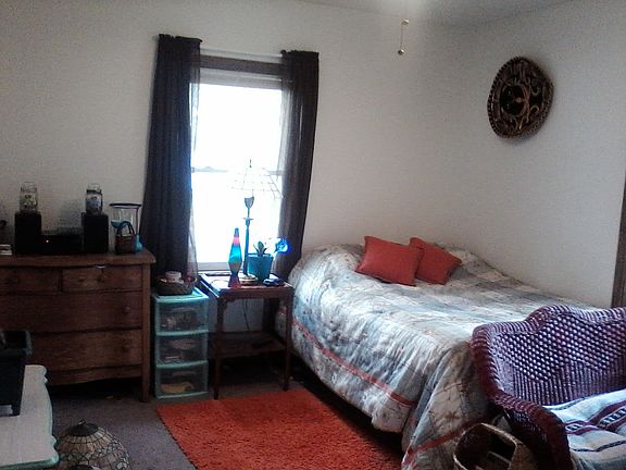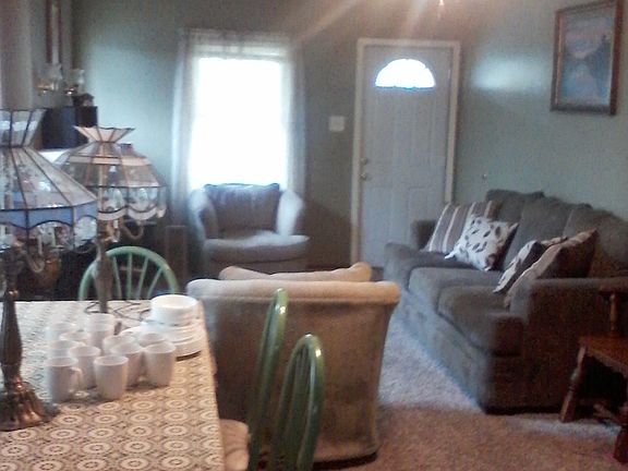 cute 2 bedroom 1 bath ranch style home. Large laundry room off of kitchen, nice size eat-in kitchen with newly hand crafted pantry cabinet--lots of cupboard space. Large living room/dining room with carpet throughout, hardwood floors underneath. Fireplace in living room. Updated fixtures and ceiling fans. 3/4 unfinished basement. Large fenced in backyard--room for a garden. 4 fruit trees, and a young sugar maple in front yard.