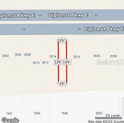 Cleared VACANT LOT (25x125) zoned Commercial Professional (CP), free of any animal restrictions. Conventionally located close to shopping and other local eateries, schools, gyms, storage and more. This area is part of the NORTH 1 EAST 2027 City Utilities Expansion, starting in 2027 city water and sewer will be added to this entire area. Cape Coral is experiencing exponential growth and this area will be undergoing major construction in the coming years. (348 Diplomat Parkway W & 2008 Diplomat Parkway E & 1936 Diplomat Parkway E is also available, identical Lots)