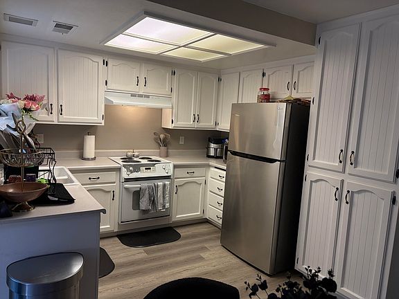 Perfect Starter home, clean, energy efficient, cute and cozy PUD. The living room has vaulted wood ceiling and a skylight, wood mantle in the fireplace, The kitchen is bright and cheery and there is a slider on the side by the dining area to a private patio. Has a 2 car garage and extra parking for guests. This unit is close to one of the two pools for the hot summer days. HOA covers the maintenance of the yard around it and the pools.