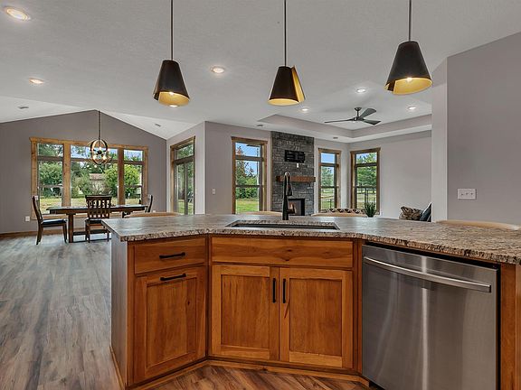 Beautiful New One Level Home with Open Floor Plan Featuring 9' Ceilings, Gorgeous High End Plank Flooring, Heated Floors, and Extra-Large Windows Providing an Abundance of Natural Light. Dream Chefs Kitchen with an Oversized Island, Granite Counter Tops, Custom Cabinets, and Walk in Pantry!!! The Living Room has a Stunning Floor to Ceiling Stone Gas Fireplace, Vaulted Ceiling, and Chic Ceiling Fan!!! The Primary Suite Features an Oversized Walk in Closet with Built Ins, Custom No Step Walk in Tile Steam Shower, and Dual Sinks!!! The Fully Finished Garage Is Extra Deep, has 8’ Garage Doors, Floor Drain, In Floor Heat, Hot and Cold-Water Hook Up, and an Epoxy Floor!!! Full Landscape Package is Included with In Ground Sprinklers, Poured Concrete Curbing, Paver Patio, Shrubs, and Trees!!! This Home is Ideally Located Across the Street from The Whitney Senior Center, Aquatic Center, Sauk River Regional Park, and Whitney Park; which Features a Scenic Paved Walking Trail, Playground Equipment, and a Picnic Area. The Development Features 10 Premium Lots on a Dead End Cul De Sac. With easy Access to Highway 15, Highway 10, Grocery Shopping, and the St. Cloud Hospital. This really is a phenomenal Location!!! There is just 1 lot remaining to be Built on with Custom Home Packages Available for those would prefer to customize their own unique home!!! Epoxy and Finished Garage along with Full Landscape Package with Underground Sprinklers, Paver Patio, Sod, Trees, and Shrubs Coming Soon!!!