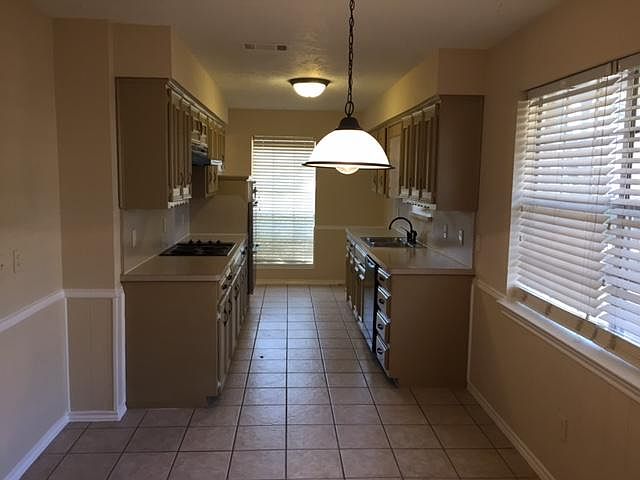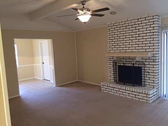 Freshly renovated single story. Two tone paint throughout: ceilings, walls, doors and trim with fresh coat. Light and bright with new oil rubbed bronzed fixtures, fans and door hardware. Black appliances with wood cabinetry. New oil rubbed bronze kitchen faucet w/ sprayer, new garbage disposer and plumbing. Brick fireplace (wood or gas burning) in living area. Breakfast + Formal dining/family room. Flooring - ceramic tile in kitchen, baths and carpet in bedrooms and hallway. 2' mini blinds throughout. Utility room / storage. New metal garage door and opener. Fenced yard with newer fence + covered porch. 2 - car garage w/remote opener. Close to shopping, golf-course, park etc. Social distancing recommended and masks required on showing. Tenant pays for all utilities; deposit of $2,050 with good credit and FICO score of 650+; $45 application fee per applicant.