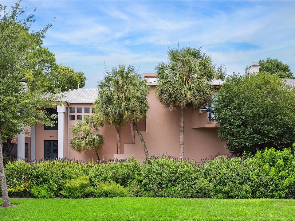 This home is designed for discerning buyers. Beautifully maintained and lovingly lived in, the home features high ceilings, sculptural light fixtures, lighted column headers and open entertaining areas. The spacious living room has uninterrupted views of the patio, the handsome pool area and landscaped grounds. Expansive wall space was designed for displaying art. A fireplace separates the kitchen from the relaxing den area. The sculptural design of the bar and kitchen island add to the drama of the first floor space. A graceful, curved staircase leads to the second floor ensuite guest room, as well as the homeowner's retreat. Featuring a spacious bedroom with fireplace, two luxurious baths, large closets, a study and an exercise room the homeowner's suite provides true privacy. The second floor also has an ensuite guest room. Shown by appointment only.