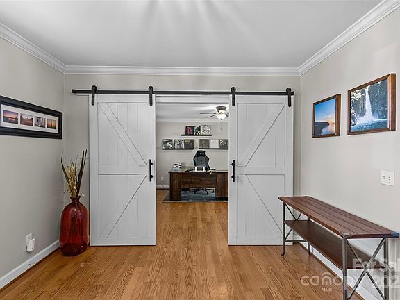 Perfectly situated in a cul-de-sac, this beautiful white brick home is located in the popular Ashley Creek neighborhood, just five minutes from charming downtown Matthews. Step inside to an open floorplan w/ hardwoods throughout most of the home & plantation shutters on the main floor. The office is a generous size, complete with white, sliding barn doors. You'll find a cozy gas fireplace in the inviting family room. The kitchen features granite countertops, stainless-steel appliances, & a gas cooktop. The large primary suite offers a walk-in closet, soaking tub, & dual vanity. A secondary staircase leads you to a spacious bonus room & functional drop zone. Enjoy the trex back deck w/ a sunshade and string lights, the perfect place for entertaining. The flat, fenced-in backyard has a semi-permanent gazebo that will convey. Don’t miss the tool shed located within the attached, 2-car garage. Enjoy the neighborhood access to Squirrel Park complete w/ a playground & scenic lake.