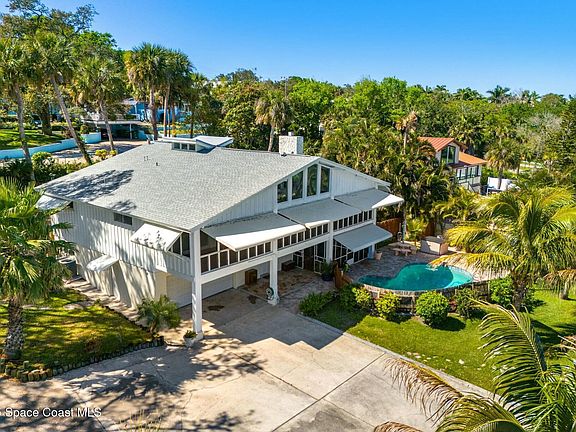 HIDDEN RIVERFRONT GEM-this stunning 5-bedroom, 3-bathroom pool home offers ultimate seclusion and privacy with over 100' of direct water frontage along the Indian River.