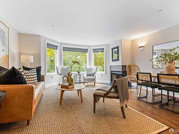 Located on a serene, flat block, this striking 2-bedroom, 2.5-bathroom corner unit offers a stylish blend of comfort and style. The 1,162 sq. ft. open floor plan is bright and inviting, featuring a remodeled kitchen and bathrooms. Each bedroom is a private retreat with its own full en-suite bathroom, thoughtfully separated from the main living area. Entertain with ease thanks to the additional guest powder room and a wood-burning fireplace that adds warmth and charm. South-facing bay windows flood the space with natural light, highlighting the rich walnut hardwood floors. The well appointed eat in kitchen includes an oversized washer/dryer. Located just blocks away from scenic Lafayette Park and the endless dining and shopping options of Fillmore Street. Exclusive building amenities enhance your lifestyle with side-by-side garage parking, private storage, a barbecue area, and a secure intercom entry. The impeccably maintained building also features a shared patio with perfect for a Fall Barbacue. With a 92 Walk Score, this residence ensures convenience and enjoyment in every direction.Low HOA dues of $493 include waterm trash insurance and reserves.