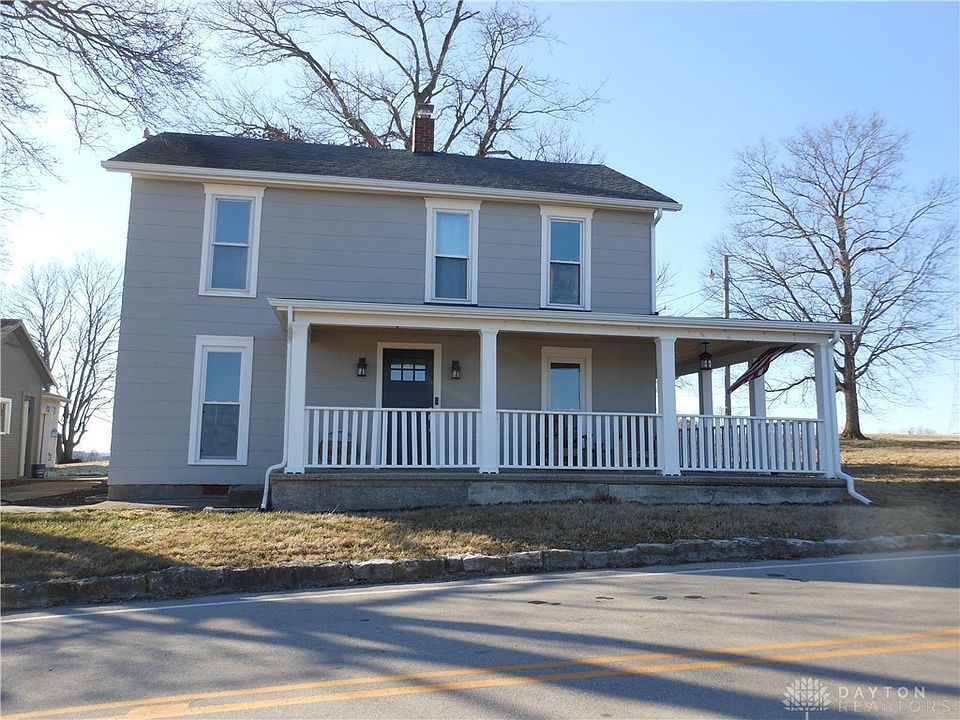 This 4 bedroom 2 bath home in Miami East school district sitting on over a half an acre has all the farm house charm and character you have been looking for...This home will not disappoint. Don't hesitate to set up an appointment to see it, this won't last long. This home offers a stunning updated kitchen with farm house sink, ample cabinets, beautiful granite counter tops, Bosch dishwasher, stainless steel appliances, recessed lighting and just the perfect lighting fixtures. Dining room adjoining the kitchen provides all the room you need for entertaining. Large, bright and cheery living room offers such an inviting feeling. First floor bathroom is so charming with its country style sink, large tiled shower and stylish chandelier. All bedrooms are on the second floor have refinished original wood flooring and larger windows that let so much natural light in. Stylish upstairs bathroom right down to the brick look flooring and the barn door. Updates: electric breaker box, plumbing, furnace, water heater, water softener, refinished original wood floors, windows, doors, Pella sliding glass door, kitchen, bathrooms, utility room ceiling, porch and utility rm. roof, gutters and down spouts, central air unit, interior paint, garage newly painted, garage door, new 20x22 pole barn and so much more. The refrigerator that is there now and you see in the pictures will not convey but will be replaced also seller is leaving the curtain rods but will be taking all the curtains. Pole barn siding will be done by closing. All information is gathered from the seller and the Miami County Auditors web page. Information is not guaranteed or warranted.