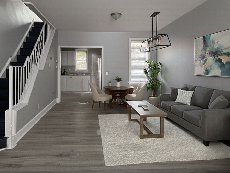This recently updated Philadelphia residence offers a contemporary and efficient living space spread across two floors. The home features three bedrooms, including a generously sized primary retreat, and one full bathroom, providing ample space for comfortable living. The interior boasts a sophisticated and fresh aesthetic defined by neutral gray walls and on-trend, light-toned wood-look flooring that flows seamlessly throughout the entire residence. The property's design emphasizes simplicity and functionality, creating a fresh and inviting atmosphere from the moment you step inside.