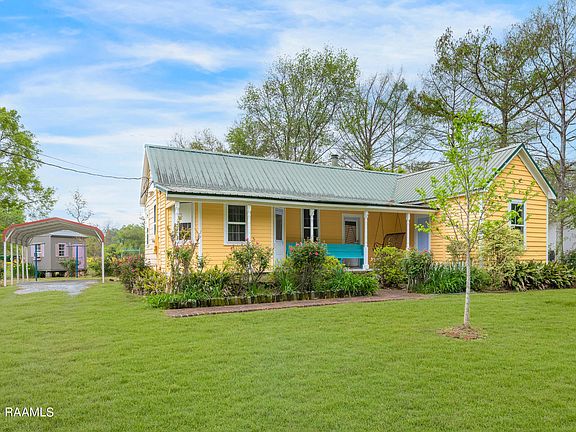 This vibrant Victorian cottage has the character and charm people dream of, in a quiet country setting that's difficult to find these days. .75 acre yard has lovely, low-maintenance landscaping. Separate building in backyard could be used as an office or workshop. Sprawling porches allow you to take in the forest & farm views all around. The crisp white interior of the 3 bed 2 bath house is just waiting for some love to make it your own (one bedroom is a pass-through & could be a bedroom/office combo or huge Primary Suite). Living room includes wood-burning fireplace & leads to the dining room and quaint kitchen with its lovely cabinetry w/walk-in pantry. Metal roof is less than 10 years old; AC roughly 2 years old. Brand new on-site sewer system. With some TLC, you can live your authentic Cajun Country dream here!