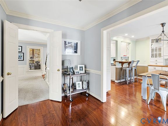 Welcome to 2016 Stonehollow Rd in the sought-after Stonequarter neighborhood! This beautifully maintained 4-bedroom, 3-full bath home offers nearly 2,500 sq ft of comfortable living space and exceptional outdoor living. Step inside to find a welcoming foyer with wood laminate floors, crown and chair rail molding, and a convenient coat closet. The formal living and dining rooms are filled with charm—each featuring detailed molding, and the dining room includes a built-in buffet perfect for entertaining. The spacious family room is the heart of the home, boasting built-in shelving, a wood-burning fireplace, bay window, ceiling fan/light, and a wine fridge. The eat-in kitchen is both stylish and functional, offering granite counters, stainless steel appliances, abundant cabinetry, tile backsplash, breakfast bar, custom pull out shelving in pantry, and even a hot water pot filler—ideal for the home chef! Upstairs, the primary suite features a renovated en suite bath and a walk-in closet. Three additional bedrooms provide flexible options for family, guests, or a home office. The finished third floor adds even more versatility with skylights, closets, and walk-in attic storage—perfect as a rec room or possible 5th bedroom. Enjoy outdoor living at its best with a screened porch off the kitchen, large Trex deck overlooking private, fenced rear yard perfect for entertaining - covered grilling patio with granite and stone, firepit area, and turf play yard surrounded by mature landscaping. A detached shed provides extra storage. Additional highlights include maintenance-free vinyl siding and windows, a newer dimensional shingle composition roof, newer heat pumps (2023, 2017) regularly maintained by Gilman, newer hot water heater (2020), water main replaced (2019), flexible floorpan with full bath on first floor, and award-winning Henrico County schools. This home blends timeless charm with modern updates and a private, fun backyard retreat—don’t miss your chance to call Stonequarter home!