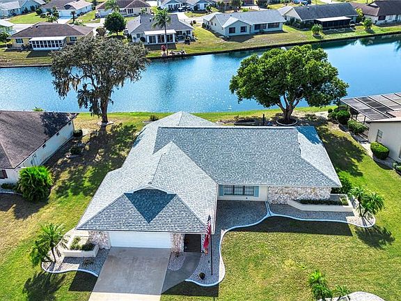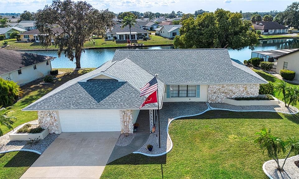 This home located in the 55+ retirement community of Sun City Center, FL, which has been voted the number one retirement community in the country, is a beautifully updated move-in ready home in the premier neighborhood of Caloosa Country Club Estates. The custom-built home features over 2000 sq. ft. of air-conditioned space, 2 bedrooms, 2 baths, a 2-car garage and is situated on the shore of Lake Caloosa. The home was remodeled in 2023 and upon entering the home you will find new luxury vinyl flooring throughout that is not only waterproof but is also pet proof and rated extreme scratch and dent proof. New interior doors with custom casings and 5 ½” baseboards were also installed along with remote control fans and night light wall switches. The openness and split floor plan are perfect for entertaining family or guests and at the same time gives privacy when your guests are staying overnight. The large living room is bright and airy and provides you with a great space that can be used as a formal space or a more casual area for entertaining family and friends. The master en-suite has French doors to the sunroom providing you with a relaxing lake view and the room is large enough to accommodate King size furniture. The master bath has new cabinets with soft close drawers and cupboards, granite countertops, a double vanity with new mirrors and lighting and a new tiled walk-in shower. There is also an instantaneous water heater with scald control that is both convenient and will help reduce the utility bill. The kitchen and family room along with the dining room and the sunroom are the heart of the house. The totally upgraded kitchen features cabinets with an abundance of soft close drawers and cupboards, granite counter tops, beautiful tile backsplash, new lighting, including under cabinet lights, stainless steel LG appliances, a five-stage reverse-osmosis drinking water system and a pass through to the oversized sunroom. The kitchen is also open to the family room which includes a breakfast area with additional cabinets and counterspace and a fabulous view of the water out back. The dining room is adjacent to the kitchen and has French doors that open to the sunroom providing views of the lake. The sunroom is an expansive 12’X34’ glassed-in and air-conditioned space that is perfect for relaxing after a round of golf or for entertaining family and friends. Whether you are just relaxing with a good book or morning coffee or entertaining numerous friends and family this home is perfect. When buying a home in Florida, insurance is an important to consider. The panel box, disconnects, GFCIs, and plumbing are all up to date and the roof was installed in 2014 and the A/C in 2016. The water for the irrigation system is supplied from the lake which saves you on your water bill and the annual neighborhood HOA is only $90. With its location, upgrades, and view, this property should be on everyone’s list to see, so make an appointment to stop by before it’s too late.