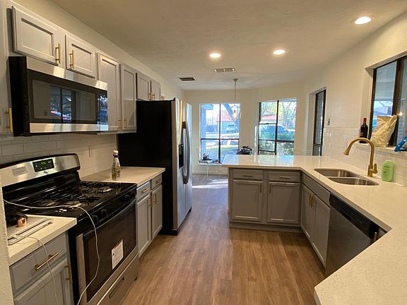 This home features a 2 car garage, 3 patios, 2020 appliances, quartz counter tops, fireplace, 2020 floors, new toilets, fresh paint, and a friendly neighborhood!