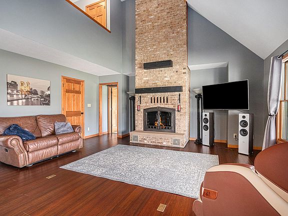 Here is a beautiful custom built home in Edwardsburg schools, that sits on 5.22 acres & has an additional heated 54X32, 4 stall garage complete with a hang out space as well as a car lift. The 2 car attached garage has access to the basement or main floor laundry room. When you walk into the house you will find an open kitchen that looks into the vaulted ceiling living room with a 2 story brick fireplace. Or if you prefer, host outside with a large entertaining patio off kitchen. The main level also includes a formal dining room & master bedroom with large master bathroom, complete with tub, double sinks, shower, & walk in closet. Upstairs you will find 2 bedrooms & bath. Downstairs has a room setup for a first class theater, bar and kitchenette areas & a separate bonus room.