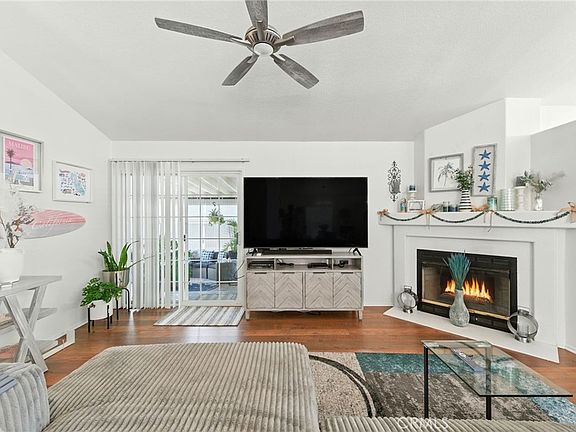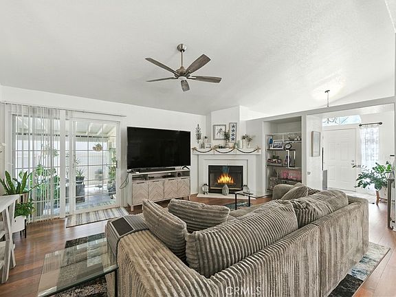 Welcome to this thoughtfully upgraded land lease home located in the desirable Canyon View Estates, a secure guard-gated community offering comfort, style, and convenience. After the foyer, step into a spacious great room featuring fireplace, high ceilings, new laminate flooring throughout, and a sliding glass door leading to the serene backyard. The open-concept layout flows seamlessly into the modern kitchen, boasting granite countertops, subway tile backsplash, stainless steel appliances, and a center island—perfect for gathering and entertaining. Enjoy your morning coffee in the cozy breakfast nook, overlooking the landscaped front yard. The primary suite is generously sized and offers custom automatic blackout shades, closet organizers, and direct access to the backyard. The remodeled en-suite bathroom showcases dual floating sinks, a soaking tub, and a spa-style shower with a sleek barn door. Two additional bedrooms also feature new laminate flooring, with one including built-in closet organizers. The second full bath has been tastefully remodeled to match the home’s cozy modern look. Step outside to your private backyard oasis, complete with ample shade, spa, plenty of grassy space, and mountain view backdrop—ideal for relaxing or entertaining. Additional upgrade include: new garage door opener, new security front door, new ceiling fans, and new lighting. Community amenities are 24 hour gated access, 2 pools and spa, 2 sports courts, 2 play areas, clubhouse, and RV storage. Conveniently located near bike and walking paths, close to parks, shopping, schools, and entertainment.