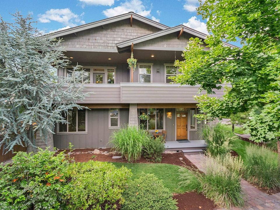 This stunning home on a corner lot is surrounded by beautiful trees and located in the desirable NW part of Bend. It is a stones throw from the Deschutes River and additionally just as close to the popular River Trail that accesses downtown Bend and the remarkable Archie Briggs Canyon. It is backed to scenic acreage that offers privacy and tranquility. The upper level offers a spacious great room with amazing views, vaulted ceiling, lots of windows, floor to ceiling stone fireplace, powder bath, kitchen with granite countertops, stainless steel appliances, solid wood floors, big deck for entertaining, W/D hookup, master suite with jetted tub and heated tile floors. The lower level is setup as a guest suite with a kitchen, living space, two bedrooms, Jack and Jill bathroom, laundry room and has a separate entrance that opens to the private backyard.