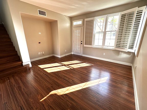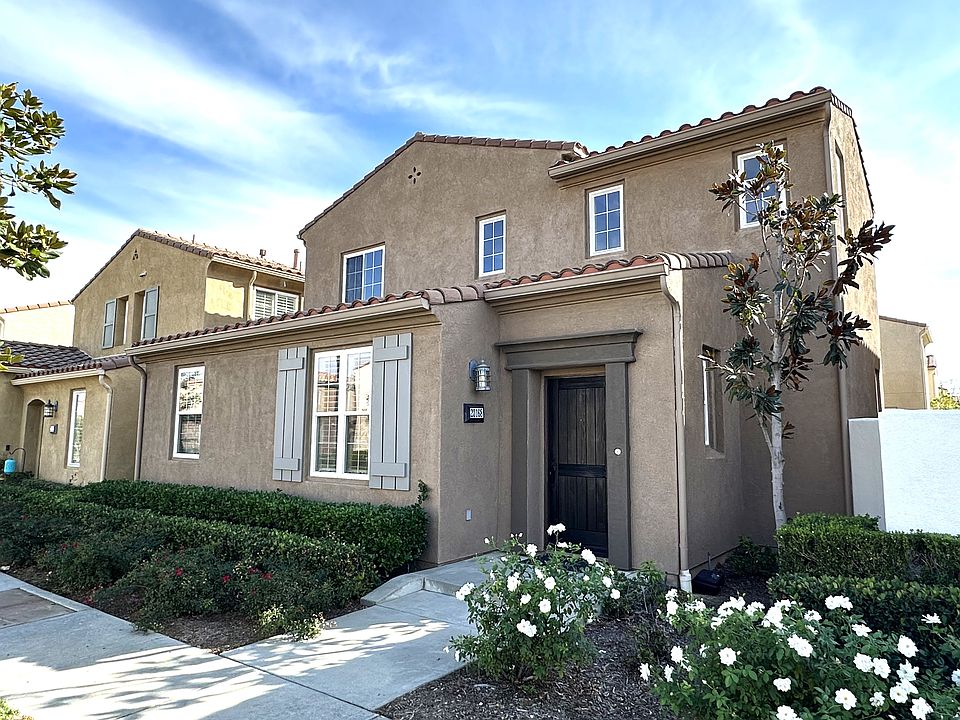 Enjoy resort-like living in this Gated Tuscany Community at Porter Ranch. Two story 3 bed and 2.5 bath with 2 car attached garage. Nicely upgraded with granite counters, wood floors downstairs and high end carpet upstairs, and plantation shutters throughout. Enjoy the California outdoor living in the enclosed nicely landscaped backyard with Arizona concrete patio. Tons of storage space with cabinets in the garage. Walk to tranquil community pool and spa. Easy access to the 118 frwy, shopping, dining, hiking trails, parks, and new highly rated K-8 porter ranch school! 1 year or more