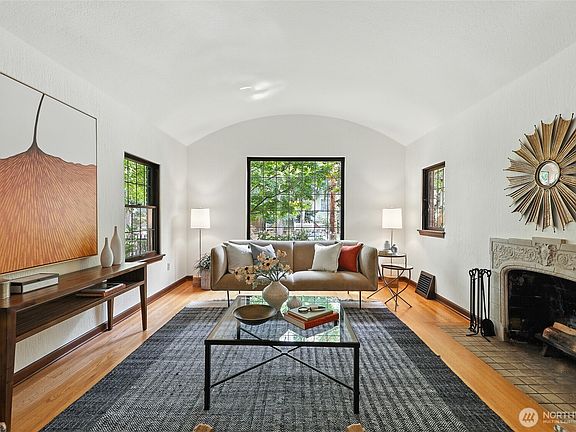 Step into a distinguished storybook Tudor setting. The home captivates with its classic brick façade and meticulously landscaped grounds that evoke a sense of tranquility and refinement. Inside, the living room stuns with a soaring barrel ceiling and breathtaking stained glass picture window, an artistic centerpiece that bathes the space in radiant, multicolored light. Graceful proportions, period details, and thoughtful updates blend seamlessly throughout, offering historic charm and modern livability. Host in the formal dining room. Relax in the sunlit yard. Read a book in the adorable kitchen nook. Just moments from Volunteer Park, vibrant cafes, and urban landmarks. A rare opportunity to own a piece of Seattle’s architectural heritage.