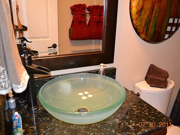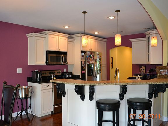 Beautiful custom built ranch on a finished bsmt. Kit opens up into grt rm w/FP, formal DR, 3 BR, 3 full BA, vessel sinks, trey ceilings w/ rope lighting, crown moldings, granite counter tops, Bsmt has FR/RR w/FP, wet bar, theater RM has 73 diagonal TV, office, full BA, cental vac w/vac pans in KIT, bar, furnace rm. Stereo speakers in GRT RM, Kit, MBD, MB & outside deck w/ volume controls on walls. Patio under deck. House has hardwoods, ceramic tile, slate, carpet floors.
