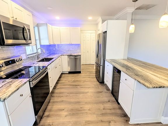 Stainless steel appliancesCustom backsplashUnder cabinet lightingWine frig