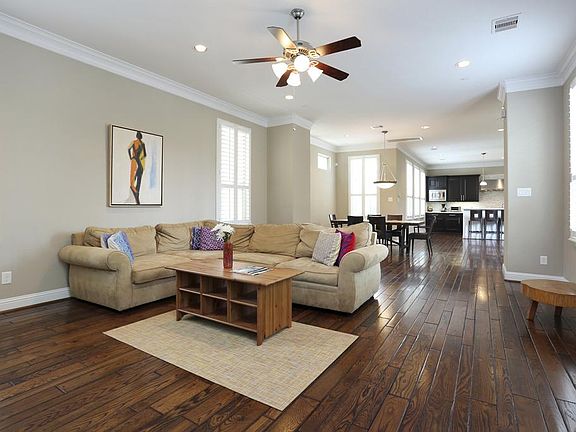 Fabulous recent construction (2012) in gated enclave with large yard. 3 bedrooms 3.5 baths, high ceilings, plantation shutters, hardwoods, open floor plan. Island gourmet kitchen with stainless appliances. 1st floor bedroom could be study with full bath. Spacious master. 3rd bedroom & utility room on 3rd floor. Beautiful landscaping, extra parking & 2 car attached garage.
