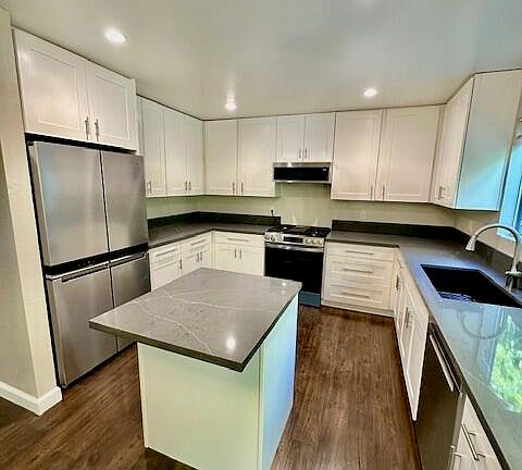 Large center islandFresh paintModern comfortQuartz countertopsBrand-new appliancesAmazing shared outdoor spaceWood floors