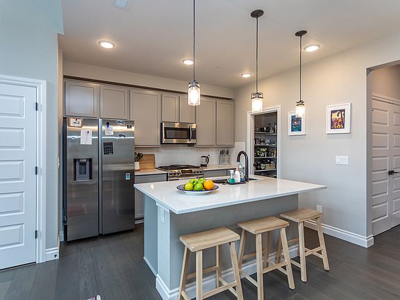 Master suiteLarge islandGas rangeStainless steel appliancesQuartz countertopsWalk in closetEat in kitchen area