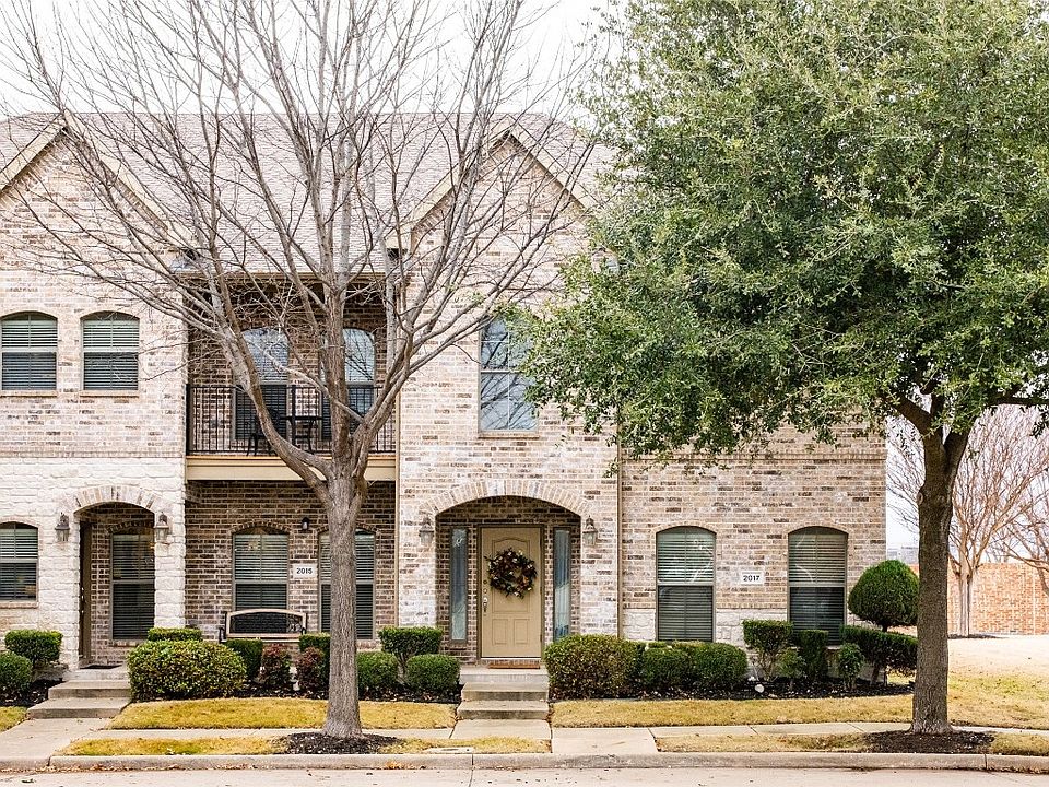 Charming corner lot townhome in the Avondale Subdivision. This home features an open floor plan with beautiful updates. The kitchen has granite counters, subway tile backsplash, a farm sink, white cabinets, and SS appliances. The family room offers a fireplace & a wall of windows bringing in lots of natural light. Off the family room is a covered balcony overlooking the green space. Beautiful wood floors through the home including NEW wide plank wood flooring on the 1st floor. A spacious master bedroom boasts vaulted ceilings with an ensuite bath that has a garden tub w seperate shower, & walk in closet. 1st Floor offers a game room, utility room, 2 bedrooms, an upgraded full bath w a new sink, countertop and cabinet. Close proximity to the new HUB, shopping, restaurants, and grocery stores. Close access to highway 121 makes it super easy to get around DFW. Don’t miss the chance to call this home!