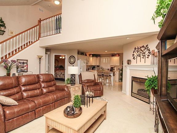 Well Kept 1.5 Story in the fields. 2 story great room with fireplace. Large eat-in kitchen with island. 2 large bedrooms up with walk-in closets. Fully finished basement with craft room and 12ft closet, office area, and large family room with egress window and half bath. Features covered patio, irrigation system, New roof 2022, New A/C 2021, HOA covers snow and lawn care. Beautifully landscaped, do not miss out on this one!