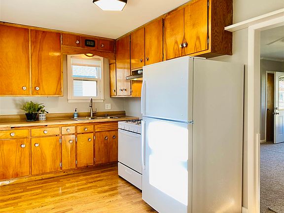 Pristine one bedroom home, completely updated with fresh paint, carpet/flooring and light fixtures throughout. Brand new stove, refrigerator and thermostat. 16 x 16 living room, 12 x 10 bedroom. Updated bath features jetted tub! 12 inches of insulation will keep heating cost very low. Also includes washer and dryer! Fully fenced yard, covered patio and generous 18 x 24 garage with door opener, electric and room for workshop. . Hurry on this one! Why rent? Great starter or investment opportunity.