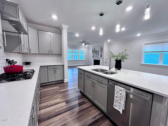 Welcome to this exquisite luxury single house located in the heart of RTP! This sunny open-plan home features beautiful hard flooring throughout the main areas and oak tread stairs. Cozy up to the fireplace on chilly evenings. The kitchen is a chef's delight with a huge island, quartz countertops, stainless steel appliances, a gas range hood, a stylish tile backsplash and a huge walk-in pantry with wood shelves. The first floor includes an in-law suite for added convenience. On 2nd floor the spacious owner's suite boasts a tray ceiling and a walk-in closet. Both the owner's bath and hall bath feature dual vanities, and the first and second floors offer walk-in tiled showers. Every Bedroom has a walk-in closet to provide enough storage. Enjoy a large loft area for additional living space. Relax on the screened porch and take in the serene wooded views. As a resident, you'll have access to fantastic community amenities including indoor/outdoor pools, tennis, basketball, football fields, a dog park, playground, 24/7 gym, game rooms, and a clubhouse. With easy access to major thoroughfares, this location provides convenience and accessibility to everywhere you need to be. 2-year new refrigerator, washer, dryer and a Ring system are included. Don't miss the opportunity to make this luxurious single house your new home!