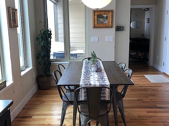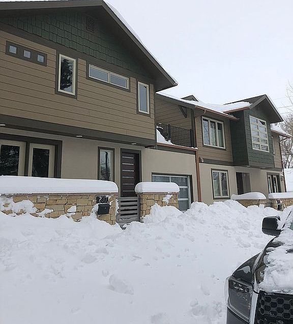 Bright and airy modern townhome built 2015 in historic downtown Cheyenne. Four bedrooms, three and a half baths. Upstairs laundry, exposed beams and HVAC, along with red oak flooring, deck above garage and patio in back. Wet bar with beetle kill bar top in basement family room.