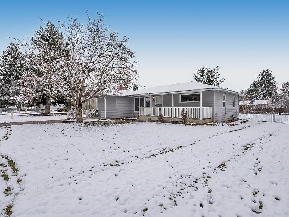 Spacious valley bungalow on a 1/4 acre lot located just minutes from amenities. This well laid-out home features 2 main floor living rooms including one with a cozy wood-burning fireplace. Additionally there is a large breakfast nook and dining area, updated kitchen with fridge, dishwasher, range included. You will find 2 main floor bedrooms as well as a full bathroom - lots of natural light throughout! Another family room located in the basement with one egress bedroom, one non-egress bedroom and laundry. Central heat with A/C! Enjoy the covered back patio, fully fenced backyard and massive storage shed! Sprinkler system, off-street parking cute front porch/patio area.