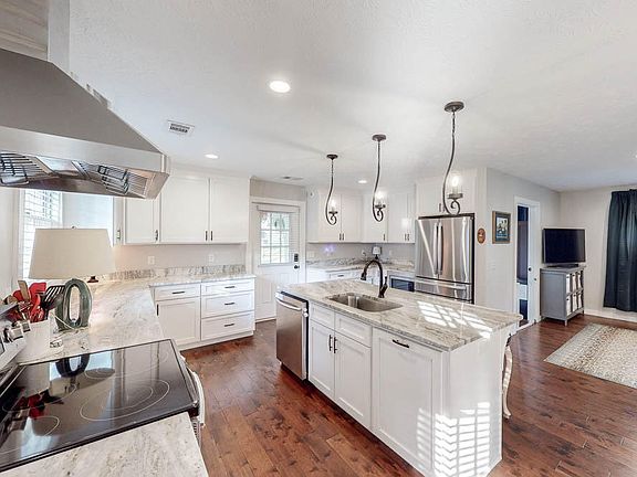 Step into this spectacularly remodeled home located in the heart of North Augusta, just a short walk away from the Greeneway! This completely updated 3-bedroom, 2-bathroom home features a charming rocking chair front porch that welcomes you into an entrance with added built-ins and gleaming hardwood floors throughout! At the heart of this stunning home lies a chef's dream kitchen! Featuring a sleek island/breakfast bar, elegant pendant lighting, exquisite marble countertops, custom cabinetry with soft close drawers, and stainless steel appliances - including an undermount microwave, range, vent hood, and dishwasher - this kitchen is a true masterpiece! The open floor plan effortlessly blends the kitchen with the living and dining areas, creating a versatile space that is equally ideal for daily living and hosting gatherings! A designated office space with a ceiling fan provides a quiet retreat, while the owner's suite impresses with custom built-ins, a walk-in closet with added built-in storage, and a luxurious bathroom featuring a marble top double sink vanity and ceramic tile flooring! Two additional spacious bedrooms with ceiling fans share a well-appointed bathroom with a marble top vanity and ceramic tile accents! Convenience is key with a dedicated laundry room featuring new French doors! The expansive fenced backyard offers plenty of space for outdoor activities, while a deck provides a perfect spot for relaxing or entertaining outdoors! A convenient attached carport with two storage rooms enhances the property's functionality! Enjoy the fantastic location with easy access to the Greeneway, downtown, shopping, restaurants, and more, making this home a true gem in a prime North Augusta location!