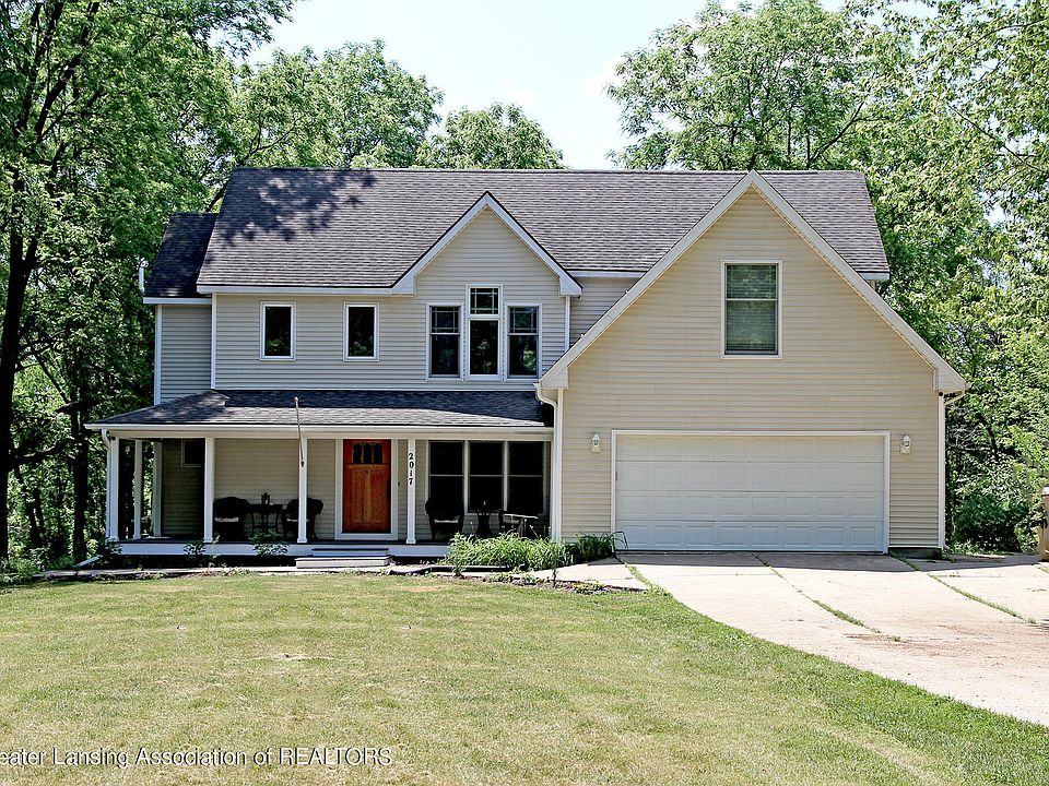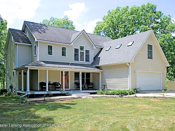 Recently remodeled energy efficient home on private 1.87 acre parcel in Haslett schools The interior was completely redesigned and updated in 2017. The first floor has an open floor plan with 3/4 inch White Oak flooring throughout. Kitchen includes custom built cabinets, quartz counters, LG Energy Star stainless steel appliances, center island snack bar, and walk-in pantry. Also a tiled mudroom with coat rack and bench, adjoining laundry and half bath. White Oak flooring extends through the three second floor bedrooms and loft sitting area. Primary bedroom suite features a ceramic tile bath and ''his and hers'' walk-in closets. A large ''flex room'' serves as hobby and family room.