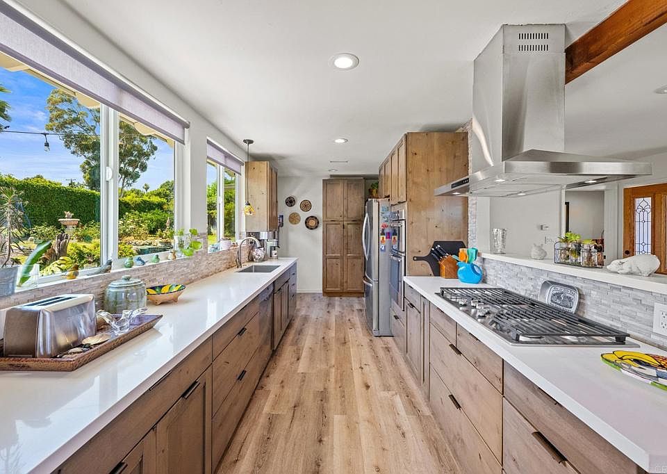 Welcome to your own private paradise in South Escondido. This three bedroom (currently 3rd bedroom is set up as an office), two bathroom home features a mountain view out the front picture window and a completely private backyard with stone waterfall fountain with small pond and a golf course putting green. Perfect for family fun and entertaining. Pool sized backyard. Inside the home there is a fully remodeled gourmet kitchen, remodeled bathrooms, LV flooring throughout, dual pane windows, new doors, recessed lighting and a bonus detached Casita ADU. The ADU is completely self contained with a private entrance, kitchenette and bathroom. The ADU rent including the garage is estimated to be $1,200 - $1,500 a month or it can be used as a guest retreat. It is currently not rented. This home is not a flip but owner occupied for 20 years. A wonderful place to call home and is conveniently located in South Escondido within minutes of the 15 and close to wineries, Safari Park, North County Mall, Pomerado Hospital and a 20 minute drive to Del Mar beach. The home provide the luxury of space but still close to all San Diego has to offer.