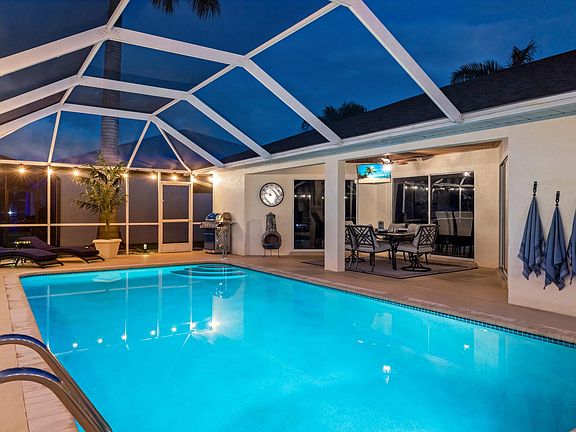 Annual UNFURNISHED RENTAL. GREAT SW Cape Coral neighborhood. Direct access saltwater canal with wrap around Dock & Lift (currently set up for Tri-Toon) and picturesque intersecting canal views. Approximately 30 minutes to open water. HEATED POOL. Amazing fishing right off of your private dock - separate launching dock for kayak. Pets friendly. Designed with Guest Comfort in mind! THE LANAI / POOL: Large heated pool framed with luxurious landscaping, meticulously manicured landscaping and palms. Pool / under truss Lanai is screened in - no mosquitos here. Convenient Pool access from the guest bath. GREAT ROOM: with amazing views of pool and open design flows into kitchen and opens to Pool / Lanai. DINING ROOM: Great views of pool and canal. KITCHEN: Bright and sunny kitchen is great for entertaining. LARGE double sided breakfast bar for additional seating and gathering, Granite countertops, Stainless Appliance package. Large pantry. BEDROOMS: Split Bedroom floor plan - Primary bedroom is located on one side of the home, the other bedrooms are on the opposite side - great design for separating the kids (or) couples sharing the home. PRIMARY BEDROOM SUITE: Walk-in Closet, Double Vanities, Walk-In Glass Shower, Private Water Closet. LAUNDRY: spacious laundry / mud room. For those working remotely from home, a builtin desk is also provided in the Guest Bedroom. Attached Garage. Located in Cape Coral just minutes to Pine Island, this home is close to lots of activities: Fishing, Beaches, Boating, Kayaking, Golf, Restaurants, Shopping, Festivals, Concerts. Fun Day Trips: Pine Island, Cape Harbor Marina, Fort Myers / Fort Myers Beach, Siesta Key, Devils Den, Twins / Red Sox Spring Training, Key West Express, Sanibel Island, Naples, Marco Island, Fishing Charters: Offshore / Fly Fishing, Kayak & Paddle Board Excursions / Boat Rentals. LANDLORD PAYS LANDSCAPING SERVICE, POOL SERVICE, PEST CONTROL, TRASH. Pets (dogs AND cats) are allowed. New Roof. No flooding during recent hurricanes. Reputable local Landlord.