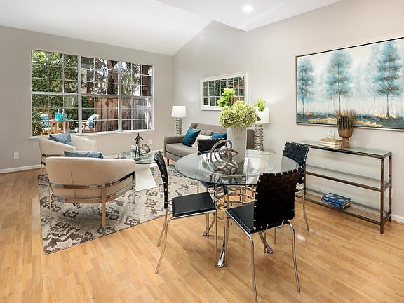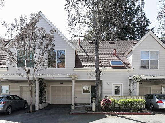 Fantastic Elan townhome located in private rear of complex. This 3 bedroom home shows like a model and features a ground floor bedroom which can double as den or home office. The contemporary open floorplan offers abundant natural light throughout with 2 skylights and large windows. Significantly updated, the kitchen has vaulted ceiling with skylight, Shaker style cabinetry, quartz slab countertops, subway tile, stainless steel appliances and a breakfast bar. Separate dining area and living room with vaulted ceiling and woodburning fireplace. Two generously sized bedrooms upstairs. Primary suite features vaulted ceiling, dual closets and vanities and oversized soaking tub. Additional features include 1 car garage with EV connection and carport, new tile flooring in kitchen and baths with laminate flooring in the remainder of the house, recessed lighting, energy efficient dual pane windows and inside laundry. Relax in your private rear yard complete with large wooden deck and garden.