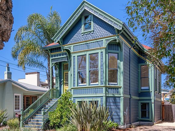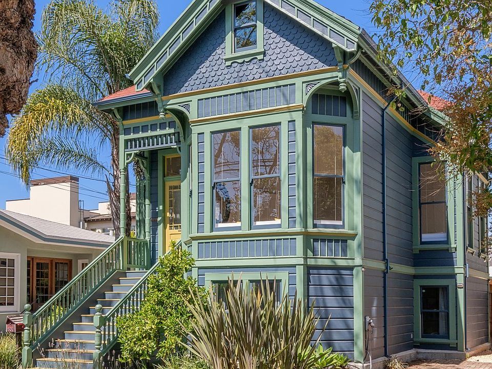 Welcome to your exquisite 1895 Victorian in Alameda’s prestigious Bronze Coast. This elegant home combines historic charm with modern sophistication, ideal for single or multi-generational living. Spanning 3,316 square feet, it offers five well-appointed bedrooms: three on the upper levels with a bath, kitchen, dining, and living room, plus two on the ground floor with their own spaces. Each level is linked by an elegant wood staircase and has private entrances. Inside, refined craftsmanship shines with a blend of hardwood and concrete floors. The renovated ground-level kitchen, bath, and bedrooms offer contemporary flair while preserving the home's original allure. Sunlight cascades through floor-to-ceiling windows, enhancing the ambiance created by chandeliers and recessed lighting. Storage is plentiful with a spacious walk-in closet and an expansive attic with architectural plans for future expansion. Outside, enjoy a lush tropical oasis with landscaped gardens, a large deck for dining, and serene patio spaces. Smart irrigation and a fenced perimeter ensure privacy and ease of maintenance. Ideally located with enviable walk and bike scores, and near Downtown Alameda, scenic beaches, shopping, and top schools. Experience unparalleled Island comfort and sophistication!