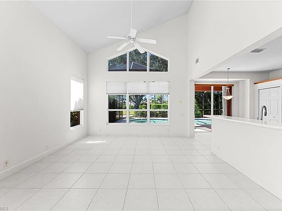 Brand new to the Rookery Pointe market is this lovely, bright, 3 Bed+Den/2 Bath+powder room, Single-Family pool home! Located on an oversized lot, the area beyond the pool is both open green space and lake with the added bonus of Sunsets as the home is West-facing! Huge volume ceilings set this floor-plan apart from most others in the community! The primary bedroom suite/bath is on the first floor along with a convenient half bath and den/office. Upstairs are 2 more bedrooms, a bath and a great office or homework nook! Newer roof and HVAC systems (2), storm windows + shutters add to the home's desirability. The open kitchen leads to a spacious partially-covered patio area for BBQ's and pool time on sunny days. X FLOOD ZONE!! (Not in a flood zone) The home is vacant and ready for your personal touches! Rookery Pointe is a beautiful gated community located in Estero, FL, nestled between Three Oaks Pkwy and Estero Pkwy. Rookery offers lush landscaping with five lakes, two preserves, a junior olympic community pool, gorgeous clubhouse, fitness center, covered and screened lanai, bbq grill, inline skate rink, basketball court, clay tennis courts, and pickleball courts.