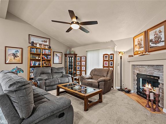 WELCOME HOME! Private corner lot with fantastic view. Recently painted exterior and interior. Newer roof. Upgraded plank laminate and carpet flooring throughout/recessed lighting/ceiling fans in both bedrooms and living room. Remodeled Kitchen, large center island with granite, ample cabinet space and newer appliances. Primary bedroom with slider to outside patio. Both bathrooms have been upgraded with granite counters and newer vanities - primary bath with deep soaking tub and separate shower. Living room with cozy fireplace and additional slider to the back yard. Open flowing floorplan. Separate indoor laundry room. Direct access to 2 car garage. Nice size backyard with a view of the valley. This home is located in Canyon View Estates which includes community amenities such as a 24/7 guard gate, usage of 2 pools and spa, 2 sport courts, and 2 play areas. Canyon View also a has available a community clubhouse and RV storage. Home is located near Discovery park, bike & walking paths, highly rated schools and shopping. Easy freeway access. Welcome Home!!