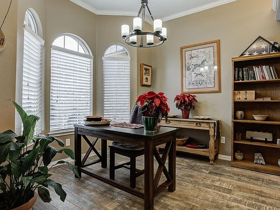 Located in the charming South Brook neighborhood, this immaculate home offers a welcoming & comfortable atmosphere. As you enter, you are greeted by beautiful wood-look tile floors that flow seamlessly throughout the main living areas. The spacious living room features a stunning brick fireplace with built-in shelving, creating a cozy & inviting focal point. The dining room is bright & airy, enhanced by a large bay window. The kitchen has tons of storage & includes a large island with butcher block countertops, granite countertops on the remaining surfaces, & stainless-steel appliances. The refrigerator & washer/dryer will be included. The master retreat is isolated and includes double vanities, his-and-her closets, and a separate tub & shower. Two additional bedrooms share a guest bathroom. The home has been updated throughout, providing modern touches and a fresh, stylish feel. The backyard features mature landscaping, a large patio & a fabulous storage building. Check it out TODAY!