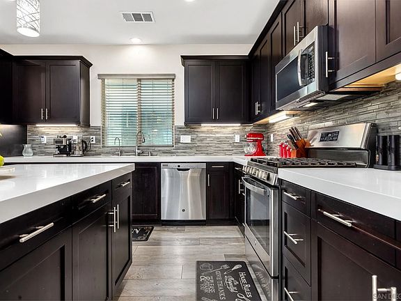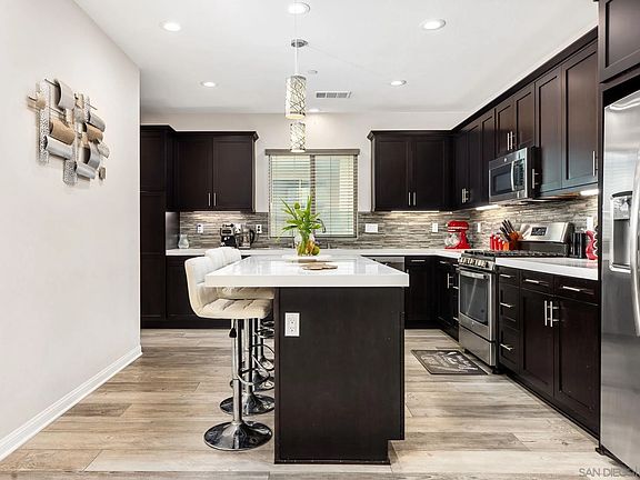 Modern 2-Story Home in The Village of Escaya! Welcome to this beautifully maintained two-story home with an attached two-car garage with a level 2 EV charger, ideally located in the highly sought-after Village of Escaya in Chula Vista. Built in 2020 and featuring owned solar, this residence perfectly blends contemporary comfort with energy efficiency. Step inside to find recessed lighting, durable flooring throughout the main living areas, and an open floor plan designed for today’s lifestyle. The chef-inspired kitchen is a showstopper, showcasing rich espresso cabinetry, quartz countertops, a spacious island with breakfast bar seating, and stainless steel appliances. A bedroom and full bath on the main level offer flexibility for guests or a private home office. Upstairs, the spacious primary suite provides a relaxing retreat with a luxurious en-suite bath. Enjoy low-maintenance outdoor living with a backyard featuring a covered patio and artificial turf, perfect for entertaining or unwinding. The Village of Escaya is more than a neighborhood—it’s a lifestyle. Walk to top-rated schools, Taco Lounge, a local coffee shop, and the neighborhood market, or explore vibrant community events right outside your door. Just minutes away, you’ll find Sesame Place Water Park and North Island Credit Union Amphitheater, offering endless entertainment options. Residents enjoy resort-style amenities, including sparkling pools, a state-of-the-art fitness center, basketball courts, soccer fields, a clubhouse, dog parks, multiple playgrounds, and scenic trails. Whether you’re starting your day with a hike, relaxing by the pool, or ending the evening with tacos and ice cream, this home places you at the heart of it all. Experience modern living, family-friendly energy, and unmatched convenience in one of Chula Vista’s most desirable communities!