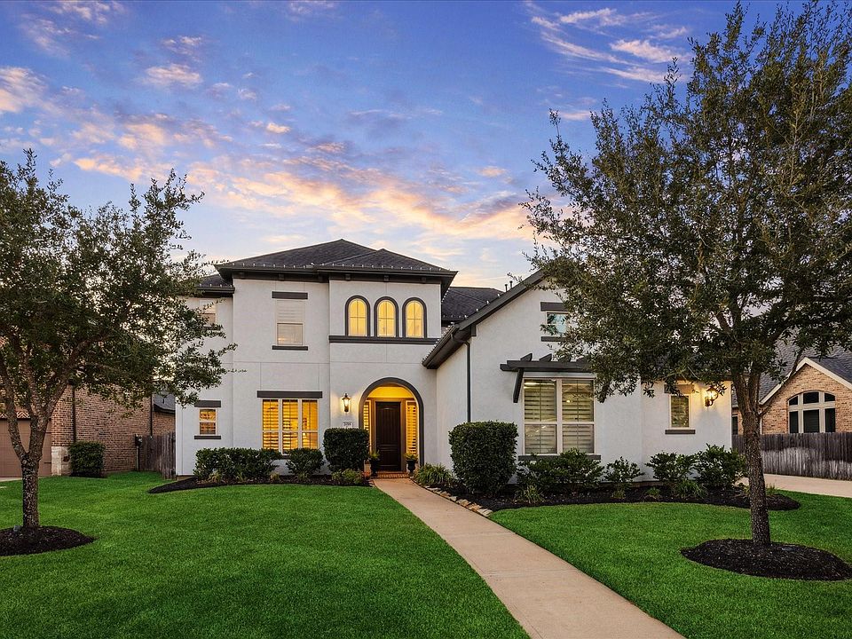 Welcome to this beautiful Coventry home located on a quiet cul-de-sac street in the Firethorne community. Featuring 5 spacious bedrooms and 4.5 baths, this residence offers an ideal layout with both the primary suite and a secondary bedroom conveniently located downstairs. Step inside to find rich engineered wood floors, soaring ceilings, and elegant details throughout. The entry opens to a formal dining room and home office, leading to an expansive living area with a dramatic stone fireplace and abundant natural light. Plantation shutters adding style and privacy.The kitchen is a chef’s dream — complete with granite countertops, stainless steel appliances, a large center island, and a double oven. Ideal for entertaining, the open layout flows seamlessly into the living and breakfast areas.Upstairs, enjoy a spacious game room and media room. Outdoor living with a covered patio and large backyard, offering plenty of room for relaxation and play. Whole-home generator for peace of mind.