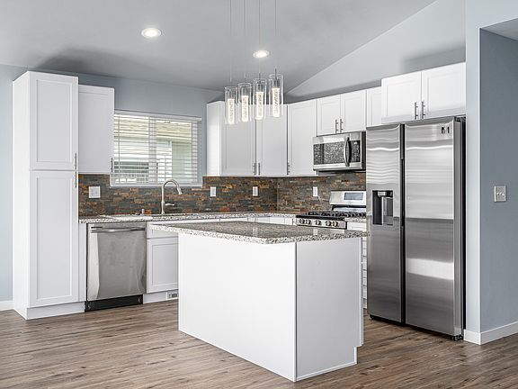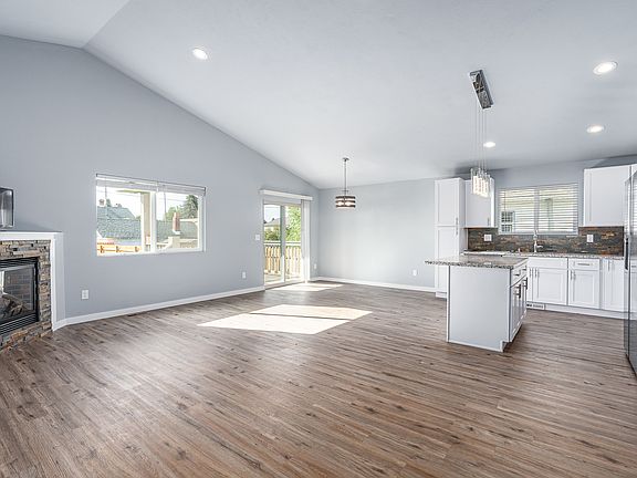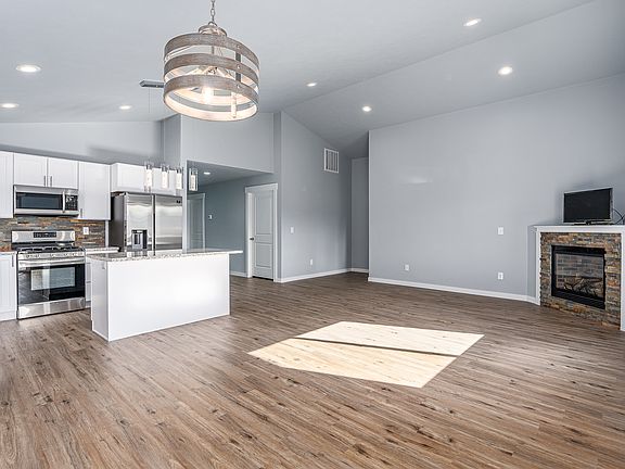 Better than new 3 bedroom, 2 bath rancher! Completed in July 2020. Great room concept floor plan. Gorgeous flooring, contemporary colors, vaulted ceilings. Wonderful kitchen with gas stove, stainless appliances, granite counter tops, timeless white cabinets, and a fabulous eating bar. Trendy light fixtures, beautiful gas fireplace. Large master suite with full bath and walk-in closet. Fenced backyard with lush new grass and sprinkler system. Attached 2-car garage. You don't want to miss this opportunity for convenient single-level living! Home includes a 5-year warranty. Click on the virtual tour link to view a 3-D walk-through tour!